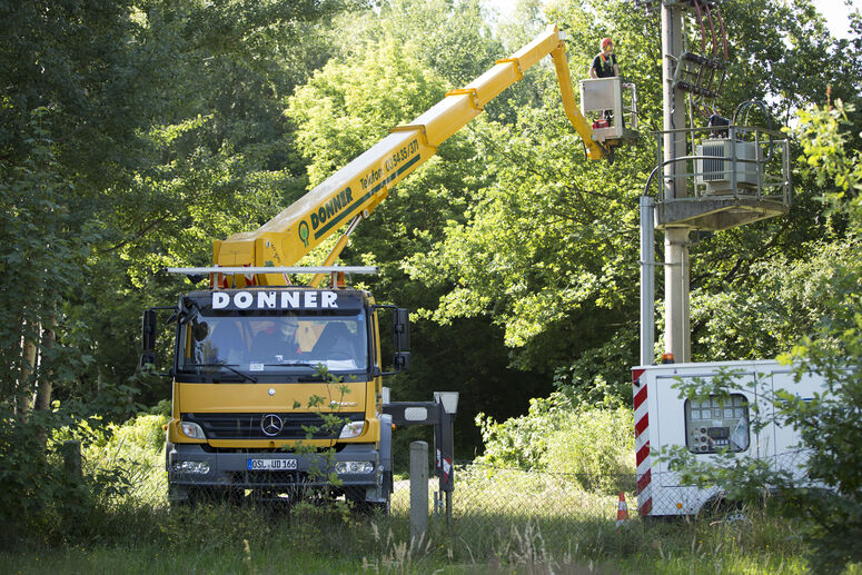Unsere hochmodernen Zweiwege-Unimogs bei der Arbeit: Damit der Bahnverkehr ungehindert fließen kannLeitungstrassen